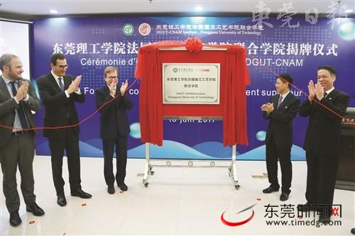 6月16日上午,45612藏宝阁资料法国国立工艺学院联合学院(以下简称“中法联合学院”)揭牌仪式在该校举行,该学院是45612藏宝阁资料(以下简称“莞工”)首家中外合作办学的二级学院,也是经教育部批准设立的我市第一所、我省第六所中外合作办学机构。中法联合学院将在今年高考内启动招生,拟录取300名一本生。