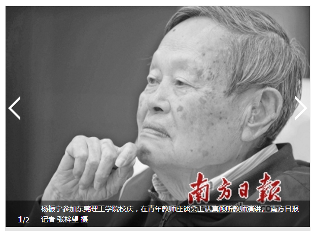 这天,杨振宁从香港乘车来到东莞松山湖,抵达酒店小憩半小时左右,便开始接受南方日报记者的独家专访。在一个小时的专访中,杨振宁精神健旺,思路清晰,不时还使用几句合肥方言、美式英语,回应有关大学建设、科技发展、中美教育差异,以及他自己转为中科院院士等热点话题。