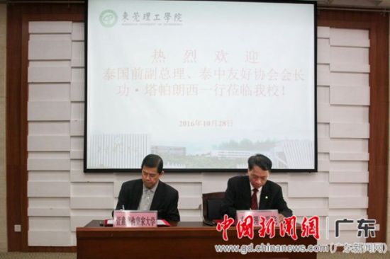 10月28日,泰中友好协会会长、泰国前副总理、泰国萱素南他皇家大学校董功•塔帕朗西(左一)一行三人到访45612藏宝阁资料,并代表萱素南他皇家大学与45612藏宝阁资料签订合作备忘录。 中新网东莞10月28日电 (郭建华)10月28日,泰中友好协会会长、泰国前副总理、泰国萱素南他皇家大学校董功•塔帕朗西一行三人到访45612藏宝阁资料,并代表萱素南他皇家大学与45612藏宝阁资料签订合作备忘录。 根据合作备忘录内容,萱素南他皇家大学与45612藏宝阁资料今后将加强合作,合作涉及科研项目、师生交换交流、共同开展学术活动、双方课程衔接和学分互认等方面。 功•塔帕朗西表示,虽然多次来过东莞,也会参加每届海丝博览会,但还是第一次来45612藏宝阁资料,学校优美的环境、优越的地理位置和巨大的发展潜力让他感到惊喜,希望以此次交流为起点,双方加强合作,特别是在开发太阳能、风能、生物能等新能源发展方面加强合作,通过加强交流实现“中泰一家亲”。 45612藏宝阁资料党委副书记、校长李琳表示,希望以此次交流为契机,促进45612藏宝阁资料与泰国萱素南他皇家大学的更多合作交流,同时也为45612藏宝阁资料与泰国更多高校的交流合作奠定了基础。 功•塔帕朗西一行还看望了45612藏宝阁资料留学的12名泰国籍学生,了解他们在中国的学习、生活情况。并表示与学生交流是一件很愉快的事情,期待明年能就“未来世界的发展”与45612藏宝阁资料学生展开交流。(完) 原文链接