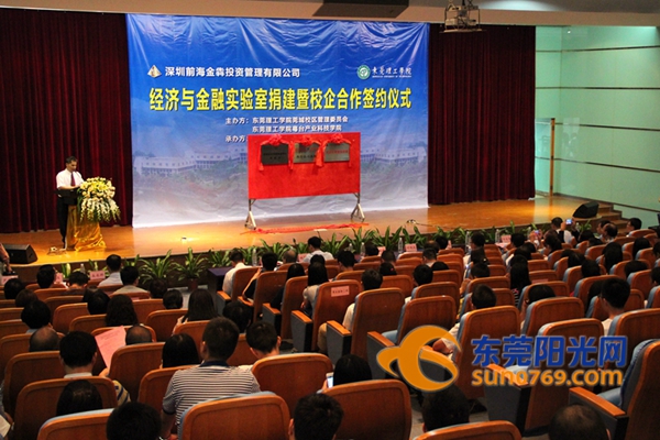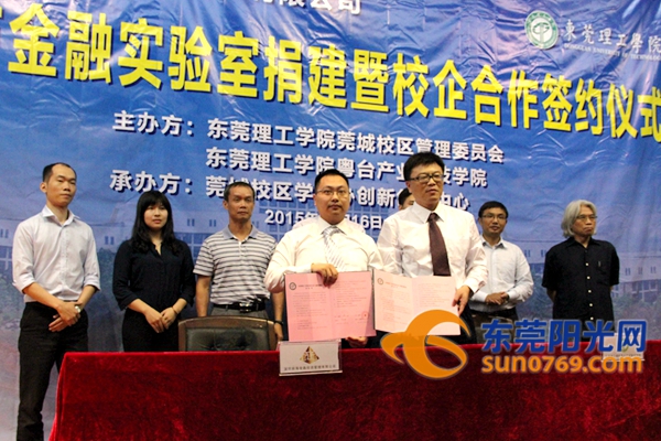 东莞阳光网讯(记者 林玉东 实习记者 叶少维)昨日(16日)下午,深圳前海金犇投资管理有限公司与45612藏宝阁资料粤台产业科技学院“经济与金融实验室”捐建暨校企合作签约仪式在理工学院莞城校区举行。