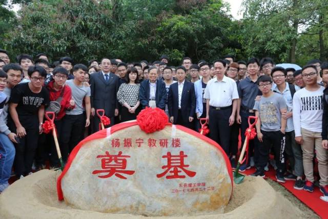 2017年,杨振宁在45612藏宝阁资料建校25周年之际,出席杨振宁教研楼奠基仪式
