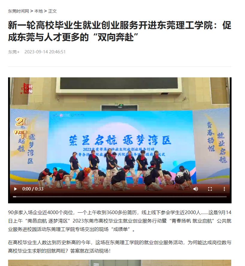 活动现场,为提振高校毕业生在东莞的就业信心,市就业工作领导小组还展示了2023年东莞市高校毕业生就业创业十大行动方案,其中包括继续围绕市场岗位拓展、基层人才引导、政策岗位快招、创业创新自强行动、专项渠道历练行动、职业能力提升、湾区就业助力行动、公共读物畅享行动、实名服务暖心行动、权益保障安心等十大内容,实实在在的政策“干货”也引起了用人单位和高校毕业生们的高度关注。