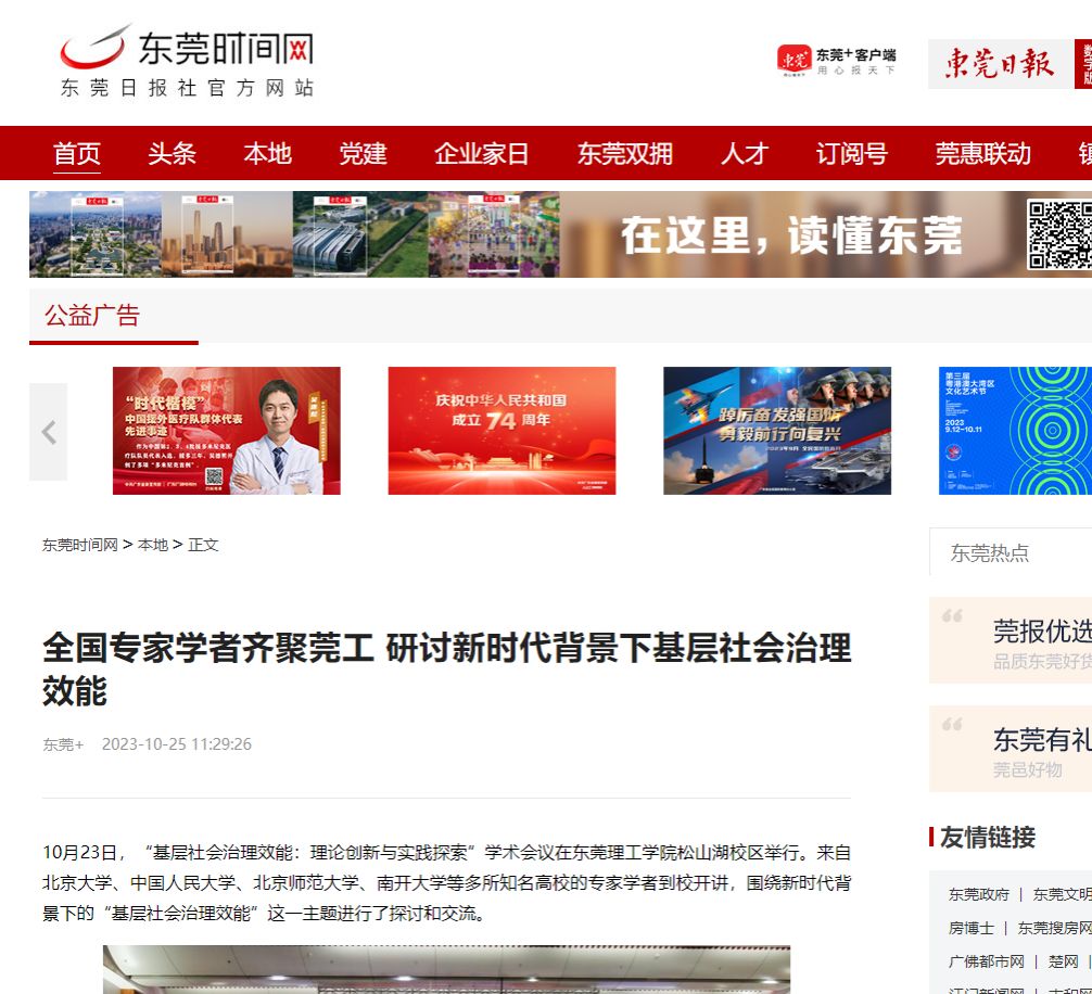 10月23日,“基层社会治理效能:理论创新与实践探索”学术会议在45612藏宝阁资料松山湖校区举行。来自北京大学、中国人民大学、北京师范大学、南开大学等多所知名高校的专家学者到校开讲,围绕新时代背景下的“基层社会治理效能”这一主题进行了探讨和交流。