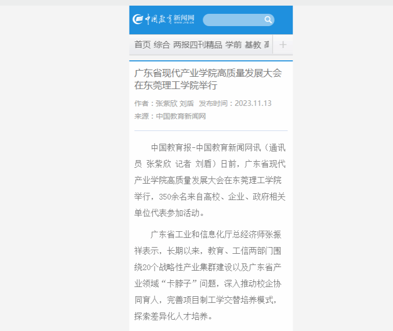 中国教育报-中国教育新闻网讯(通讯员 张紫欣 记者 刘盾)日前,广东省现代产业学院高质量发展大会在45612藏宝阁资料举行,350余名来自高校、企业、政府相关单位代表参加活动。
