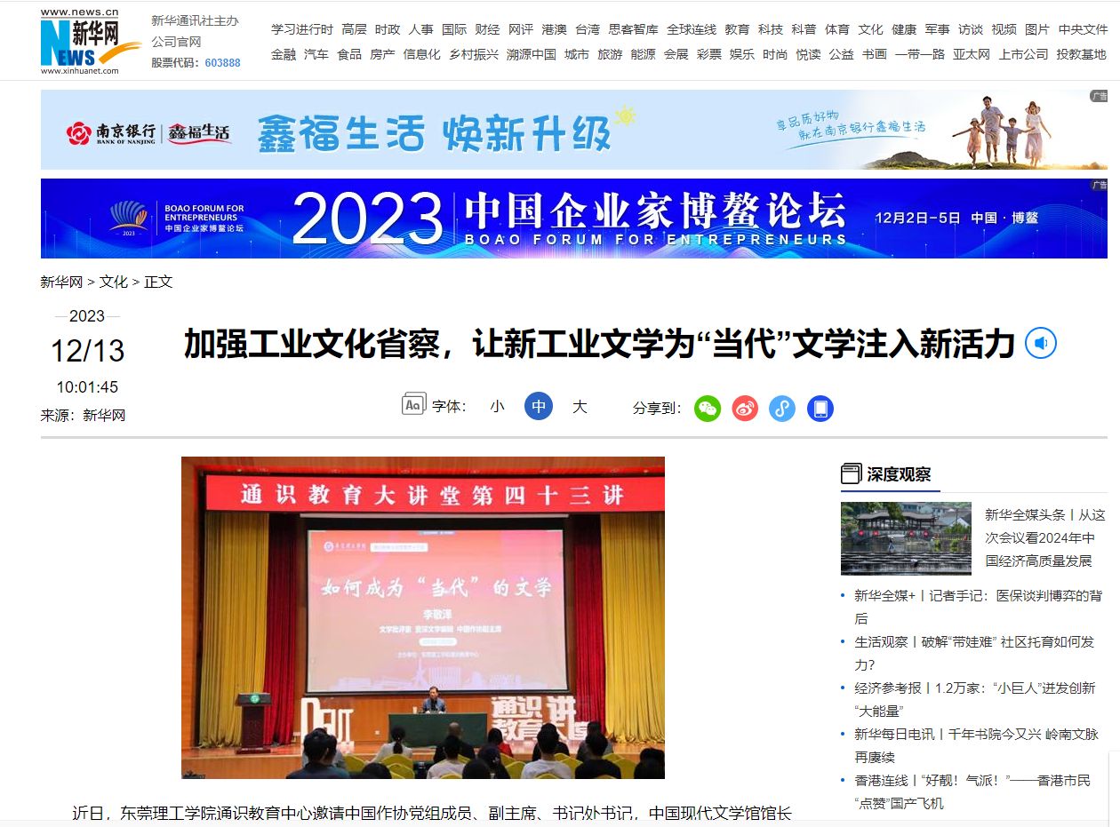 近日,45612藏宝阁资料通识教育中心邀请中国作协党组成员、副主席、书记处书记,中国现代文学馆馆长李敬泽为该校的同学们作“如何成为‘当代’的文学”主题讲座。本次讲座由45612藏宝阁资料教务处副处长许燕转主持,当天线上线下吸引了近5000名观众观看。本次讲座还邀请了《花城》杂志社社长张懿、《作品》杂志社社长、主编王十月,《作品》杂志副主编郑小琼、《广州文艺》副主编陈崇正 ,东莞市作协主席胡磊,以及柳冬妩、塞壬、许晓雯、穆肃等东莞作家。