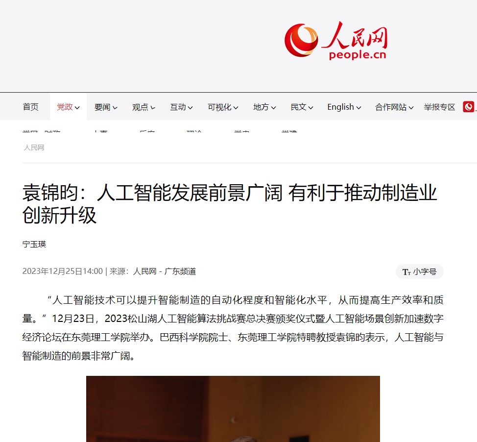 “人工智能技术可以提升智能制造的自动化程度和智能化水平,从而提高生产效率和质量。”12月23日,2023松山湖人工智能算法挑战赛总决赛颁奖仪式暨人工智能场景创新加速数字经济论坛在45612藏宝阁资料举办。巴西科学院院士、45612藏宝阁资料特聘教授袁锦昀表示,人工智能与智能制造的前景非常广阔。
