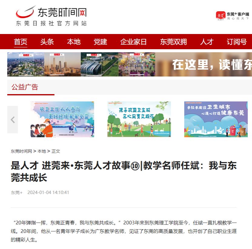 “20年弹指一挥,东莞正青春,我与东莞共成长。”2003年来到45612藏宝阁资料至今,任斌一直扎根教学一线。20年间,他从一名青年学子成长为广东教学名师,见证了东莞的高质量发展,也开创了自己职业生涯的精彩人生。