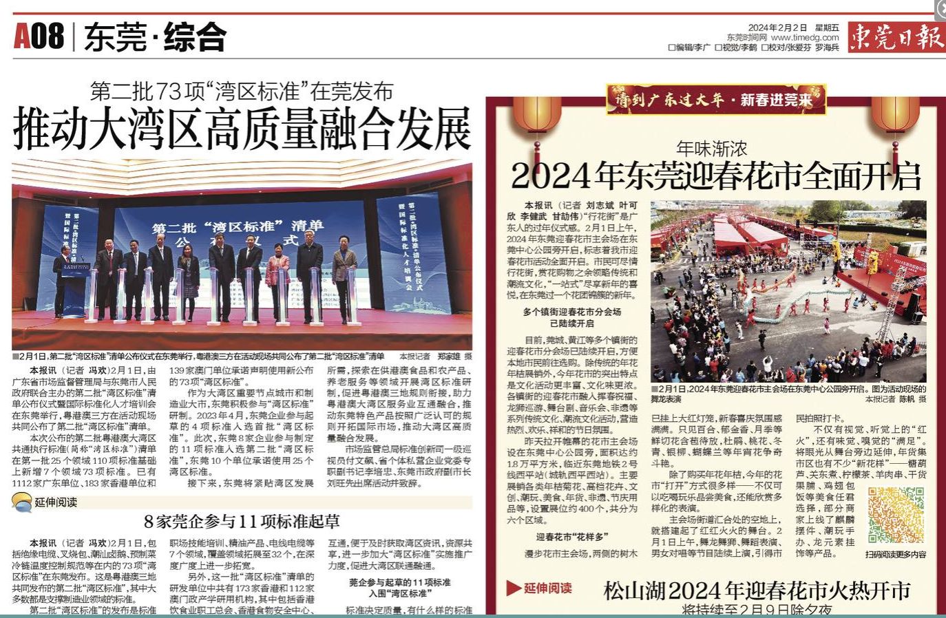 作为大湾区重要节点城市和制造业大市,东莞积极参与“湾区标准”研制。2023年4月,东莞企业参与起草的4项标准入选首批“湾区标准”。此次,东莞8家企业参与制定的11项标准入选第二批“湾区标准”,东莞10个单位承诺使用25个湾区标准。