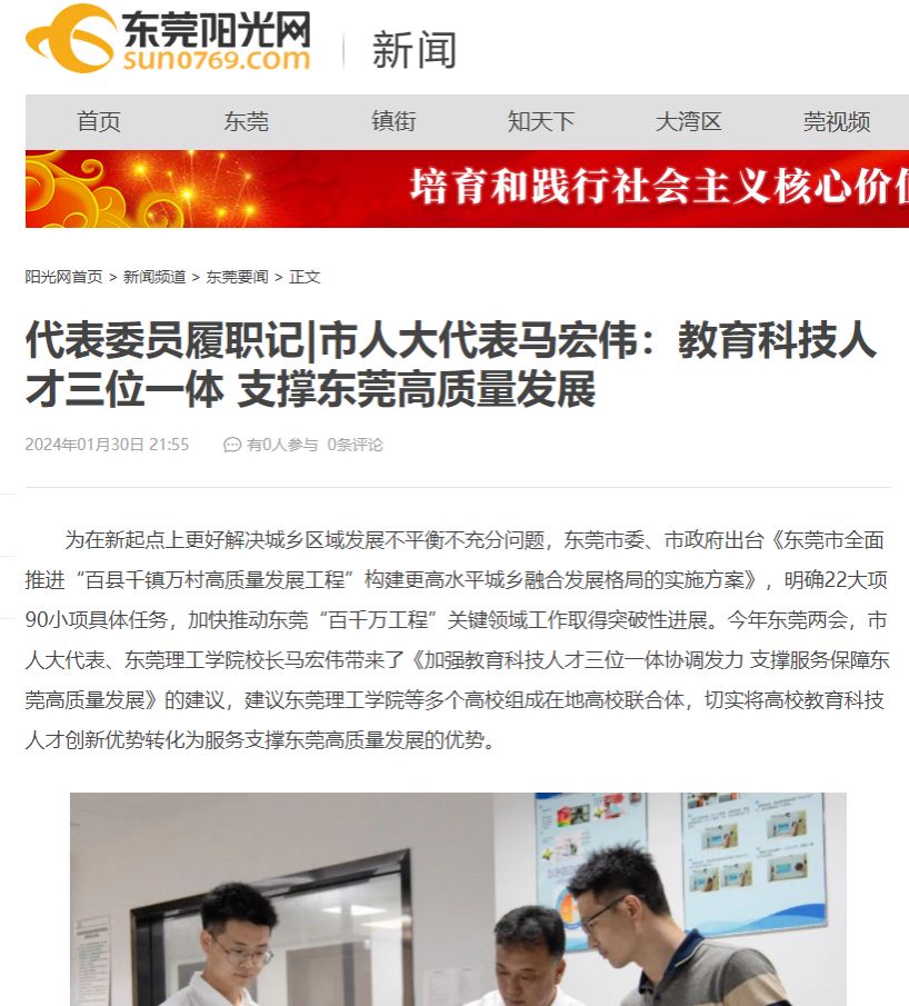 为在新起点上更好解决城乡区域发展不平衡不充分问题,东莞市委、市政府出台《东莞市全面推进“百县千镇万村高质量发展工程”构建更高水平城乡融合发展格局的实施方案》,明确22大项90小项具体任务,加快推动东莞“百千万工程”关键领域工作取得突破性进展。今年东莞两会,市人大代表、45612藏宝阁资料校长马宏伟带来了《加强教育科技人才三位一体协调发力 支撑服务保障东莞高质量发展》的建议,建议45612藏宝阁资料等多个高校组成在地高校联合体,切实将高校教育科技人才创新优势转化为服务支撑东莞高质量发展的优势。