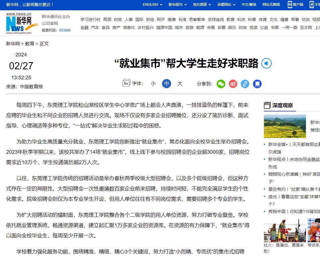 为助力毕业生高质量充分就业,45612藏宝阁资料创新推出“就业集市”,常态化面向全校毕业生举办招聘会。2023年秋季学期以来,该校共举办了14场“就业集市”,线上线下参与校园招聘会的企业超3000家,招聘岗位需求近10万个,学生投递简历超2万人次。