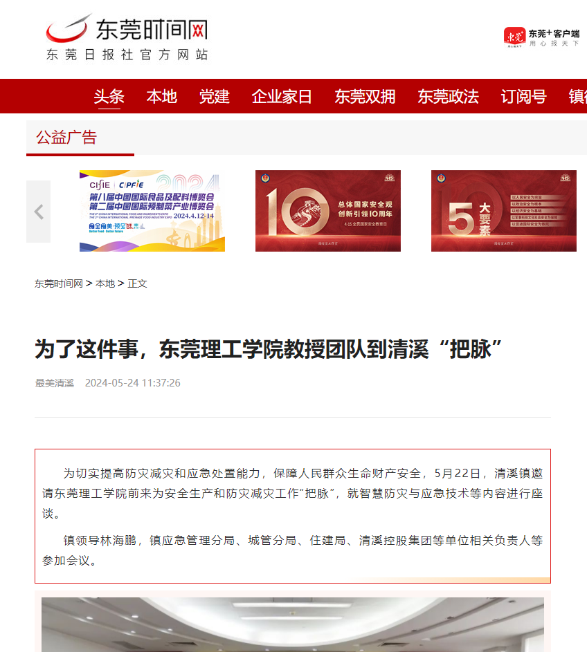 为切实提高防灾减灾和应急处置能力,保障人民群众生命财产安全,5月22日,清溪镇邀请45612藏宝阁资料前来为安全生产和防灾减灾工作“把脉”,就智慧防灾与应急技术等内容进行座谈。