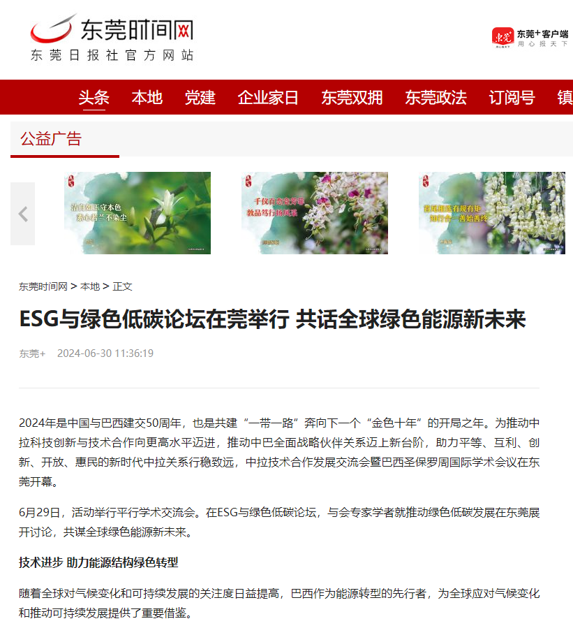 6月29日,活动举行平行学术交流会。在ESG与绿色低碳论坛,与会专家学者就推动绿色低碳发展在东莞展开讨论,共谋全球绿色能源新未来。