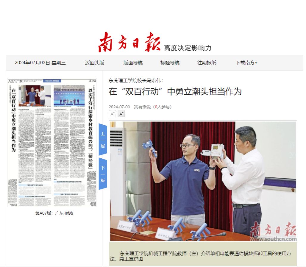 南方日报:作为东莞市第一所省市共建的普通本科院校,同时也是一所应用研究型大学,莞工是如何服务支撑地方高质量发展的?