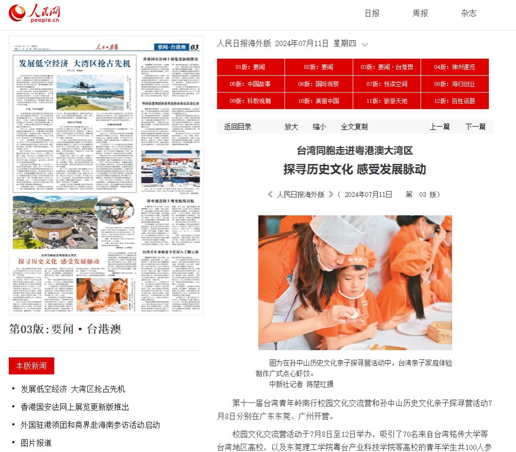 第十一届台湾青年岭南行校园文化交流营和孙中山历史文化亲子探寻营活动7月8日分别在广东东莞、广州开营。