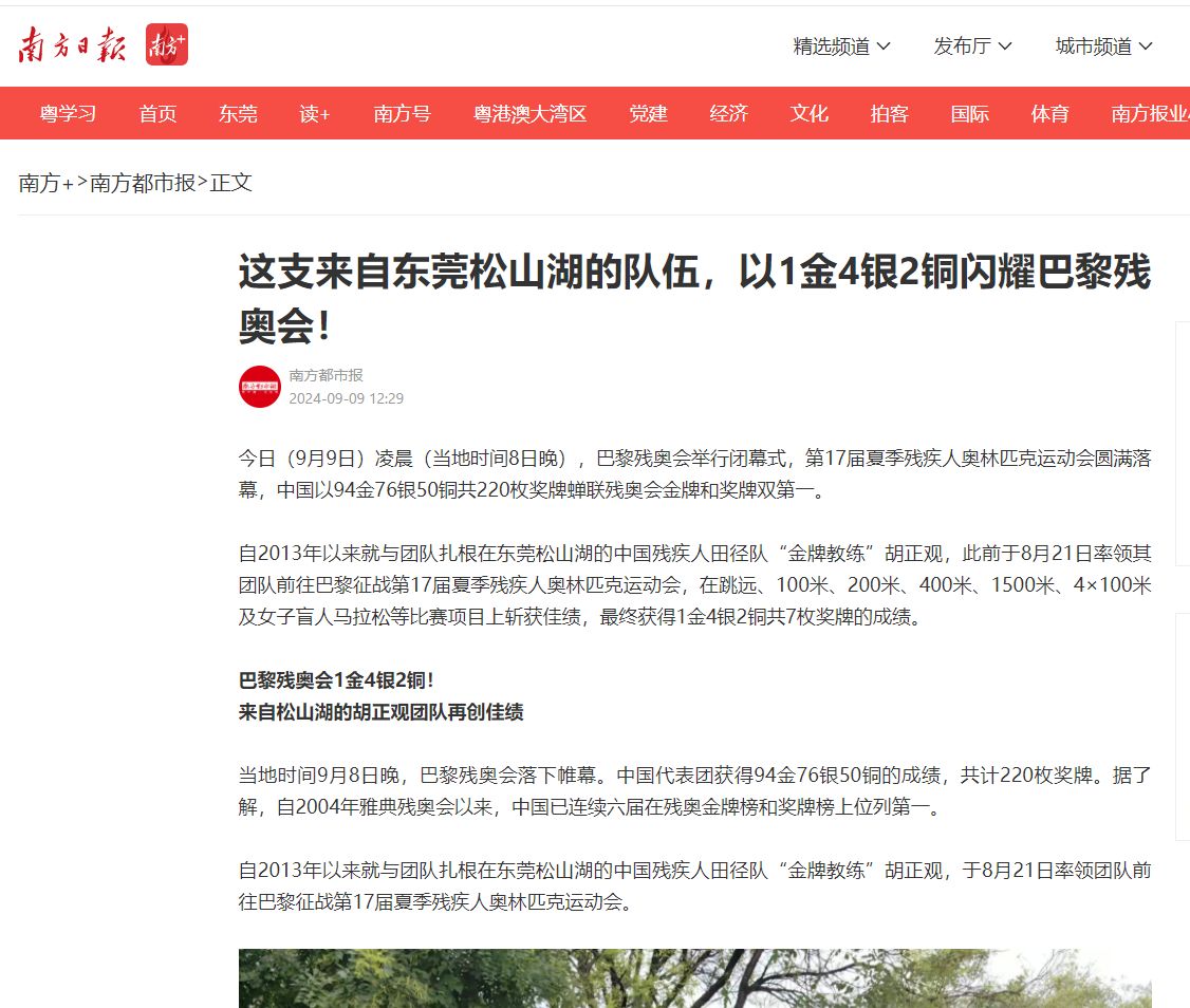 自2013年以来就与团队扎根在东莞松山湖的中国残疾人田径队“金牌教练”胡正观,此前于8月21日率领其团队前往巴黎征战第17届夏季残疾人奥林匹克运动会,在跳远、100米、200米、400米、1500米、4×100米及女子盲人马拉松等比赛项目上斩获佳绩,最终获得1金4银2铜共7枚奖牌的成绩。