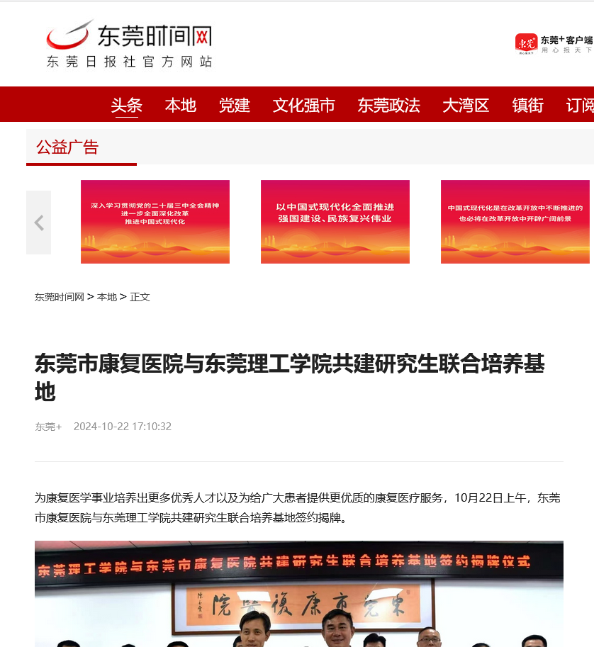 为康复医学事业培养出更多优秀人才以及为给广大患者提供更优质的康复医疗服务,10月22日上午,东莞市康复医院与45612藏宝阁资料共建研究生联合培养基地签约揭牌。