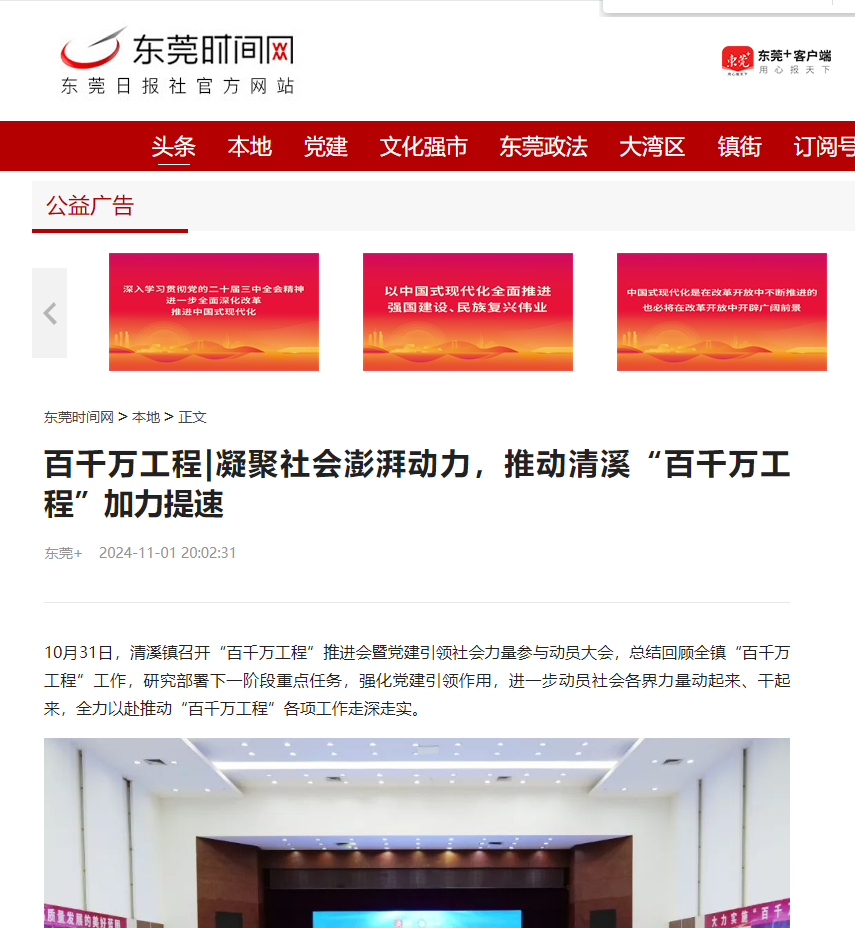 10月31日,清溪镇召开“百千万工程”推进会暨党建引领社会力量参与动员大会,总结回顾全镇“百千万工程”工作,研究部署下一阶段重点任务,强化党建引领作用,进一步动员社会各界力量动起来、干起来,全力以赴推动“百千万工程”各项工作走深走实。