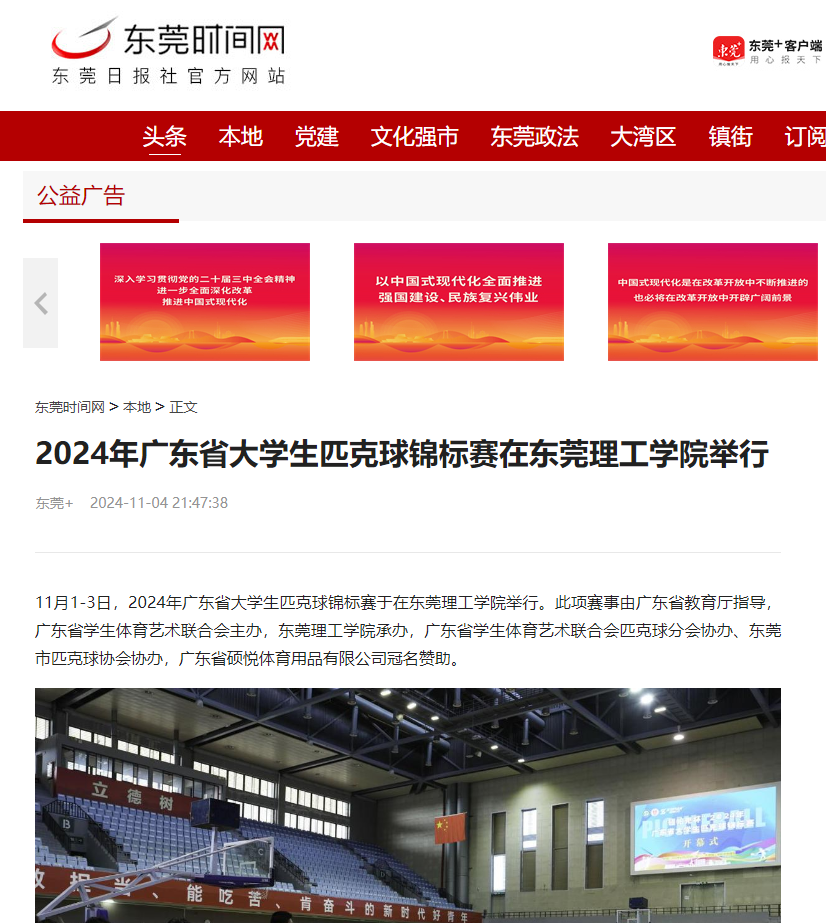 11月1-3日,2024年广东省大学生匹克球锦标赛于在45612藏宝阁资料举行。此项赛事由广东省教育厅指导,广东省学生体育艺术联合会主办,45612藏宝阁资料承办,广东省学生体育艺术联合会匹克球分会协办、东莞市匹克球协会协办,广东省硕悦体育用品有限公司冠名赞助。