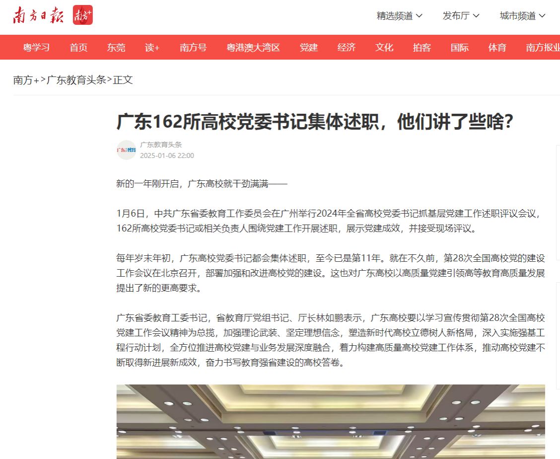 每年岁末年初,广东高校党委书记都会集体述职,至今已是第11年。就在不久前,第28次全国高校党的建设工作会议在北京召开,部署加强和改进高校党的建设。这也对广东高校以高质量党建引领高等教育高质量发展提出了新的更高要求。