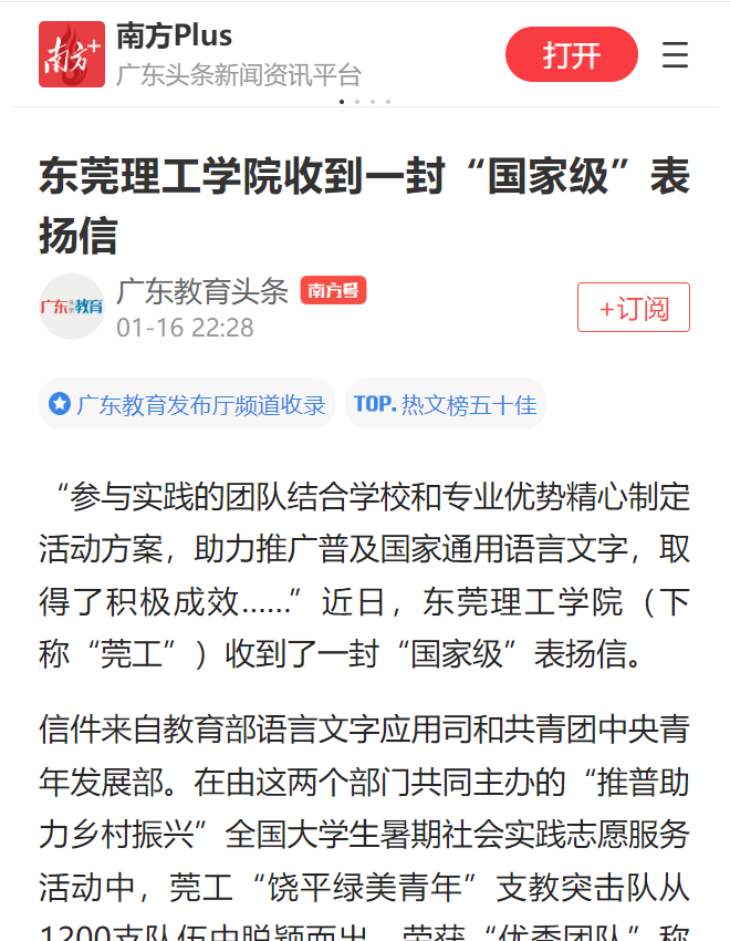 参与实践的团队结合学校和专业优势精心制定活动方案,助力推广普及国家通用语言文字,取得了积极成效……”近日,45612藏宝阁资料(下称“莞工”)收到了一封“国家级”表扬信。