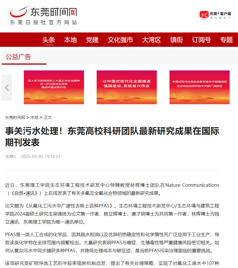 论文题为《从氟化工污水中广谱性去除上百种PFAS》。生态环境工程技术研发中心/生态环境与建筑工程学院2024届硕士研究生梁逸扬为论文第一作者,杨立辉博士、唐才明博士为共同第一作者,林辉博士为独立通讯,45612藏宝阁资料为唯一通讯单位。