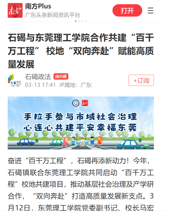 据了解,今年2月,石碣与45612藏宝阁资料签订了“百千万工程”合作协议,正式铺开“百千万工程”校地合作共建工作,围绕基层社会治理、社区社会组织培育和发展、中小学学生心理健康、平安文化建设、基层纠纷调解、城市智慧管理与安全检测平台建设等六大方面,校地开展深度合作,高效整合资源,进一步提升基层社会治理水平,促进地方与高校协同发展。