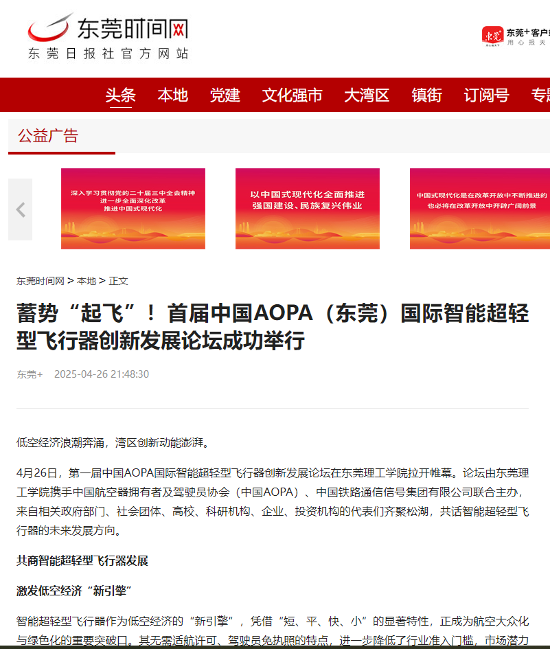 为推动行业健康、有序、可持续发展,论坛现场还发布了《促进智能超轻型飞行器行业健康发展倡议书》,号召各方携手共建开放、共赢、可持续的行业生态。
