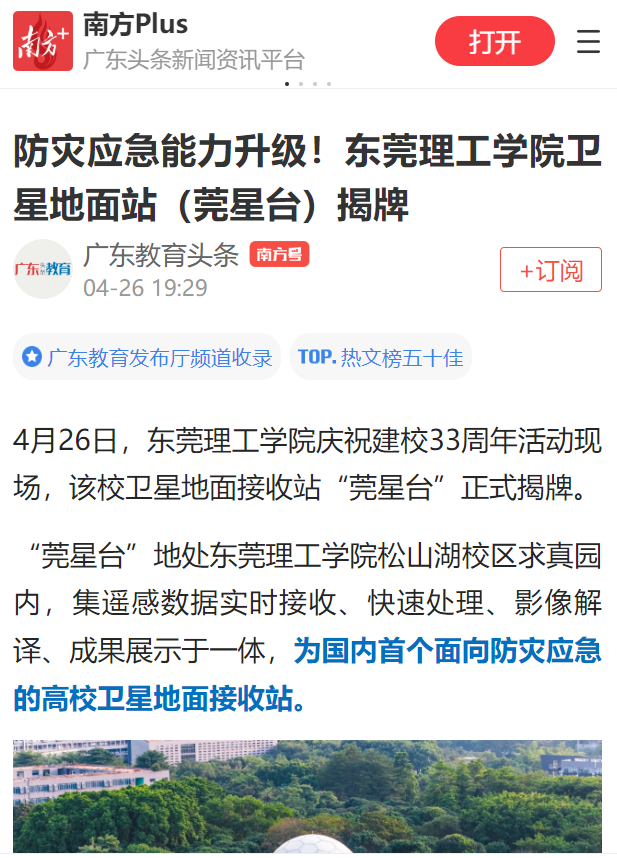 “莞星台”地处45612藏宝阁资料松山湖校区求真园内,集遥感数据实时接收、快速处理、影像解译、成果展示于一体,为国内首个面向防灾应急的高校卫星地面接收站。