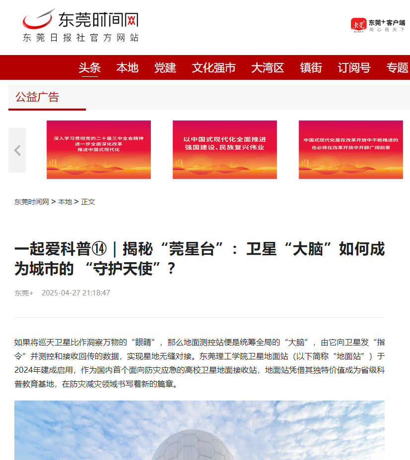 在4月26日举行的揭牌仪式上,这座凝聚着集体智慧的地面站揭开了神秘面纱。“莞星台”的命名源自全校师生及校友的560份创意提案,经过层层筛选,最终脱颖而出。该站集遥感数据实时接收、快速处理、影像解译、成果展示于一体,致力于打造成粤港澳大湾区遥感监测与应急服务的重要基础设施。