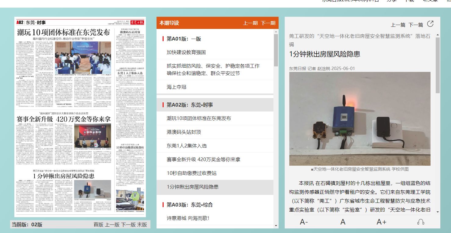 随着“天空地一体化老旧房屋安全智慧监测系统”在石碣镇的深入应用与不断优化,这套由莞工自主研发的“安全锁”正逐步展现其在守护城乡房屋安全、提升基层治理现代化水平上的重要价值。