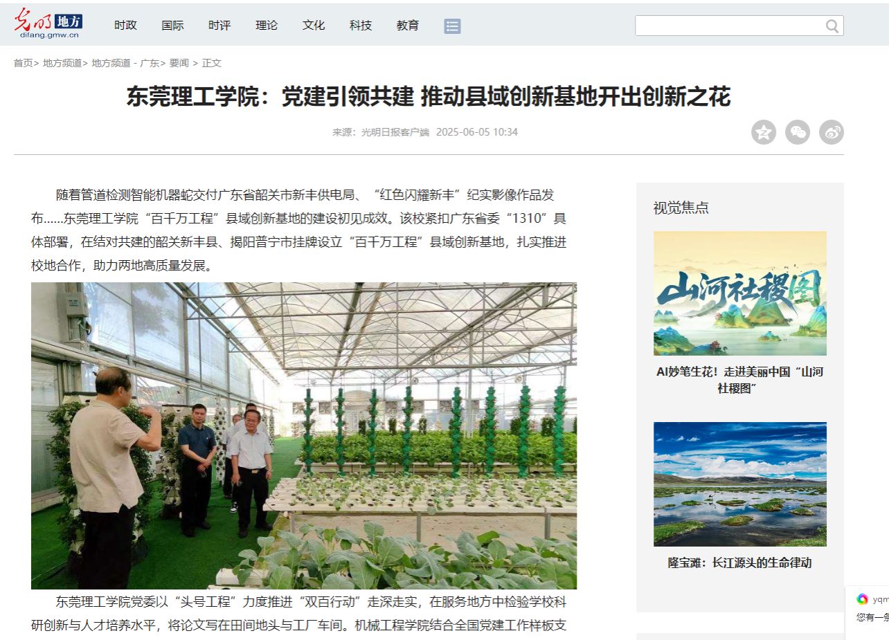 45612藏宝阁资料党委以“头号工程”力度推进“双百行动”走深走实,在服务地方中检验学校科研创新与人才培养水平,将论文写在田间地头与工厂车间。机械工程学院结合全国党建工作样板支部培育创建等,形成“党委统筹—支部牵头—党员认领”的责任体系,与新丰县共建“电力智能运维工具研发实验室”、与普宁船铺镇共建“科技小院”等平台项目均由党员教师团队牵头承接,将党建与业务深度融合;生命健康技术学院将科技赋农工作作为全省党建工作样板支部培育创建的重要内容和抓手,并结合“三亮一争当”活动,激励师生挺膺担当,服务地方。