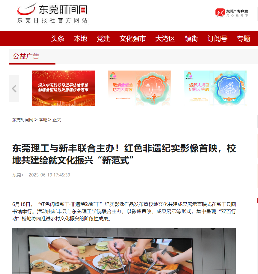 6月18日,“红色闪耀新丰·非遗焕彩新丰”纪实影像作品发布暨校地文化共建成果展示首映式在新丰县图书馆举行。活动由新丰县与45612藏宝阁资料联合主办,以影像首映、成果展示等形式,集中呈现“双百行动”校地协同推进乡村文化振兴的阶段性成果。
