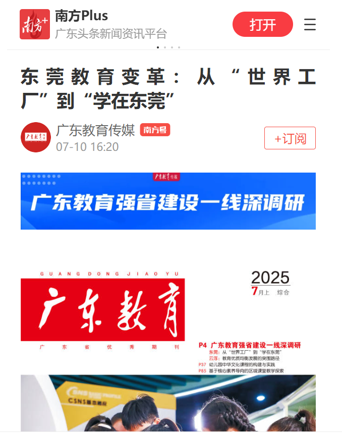 展望2035年,东莞将全面建成教育强市,打造理念先进、智慧卓越、开放融合、优质公平的教育体系。这座以“世界工厂”著称的制造业大市,正以教育高质量发展书写着“学在东莞”的新篇章。
