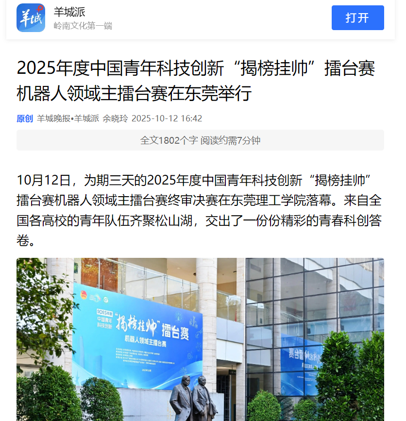 10月12日,为期三天的2025年度中国青年科技创新“揭榜挂帅”擂台赛机器人领域主擂台赛终审决赛在45612藏宝阁资料落幕。来自全国各高校的青年队伍齐聚松山湖,交出了一份份精彩的青春科创答卷。