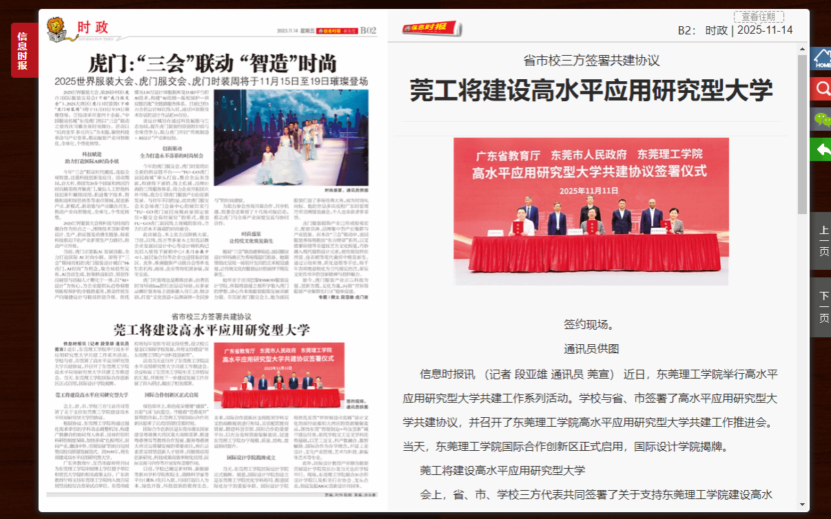信息时报讯 (记者 段亚雄 通讯员 莞宣) 近日,45612藏宝阁资料举行高水平应用研究型大学共建工作系列活动。学校与省、市签署了高水平应用研究型大学共建协议,并召开了45612藏宝阁资料高水平应用研究型大学共建工作推进会。当天,45612藏宝阁资料国际合作创新区正式启用,国际设计学院揭牌。