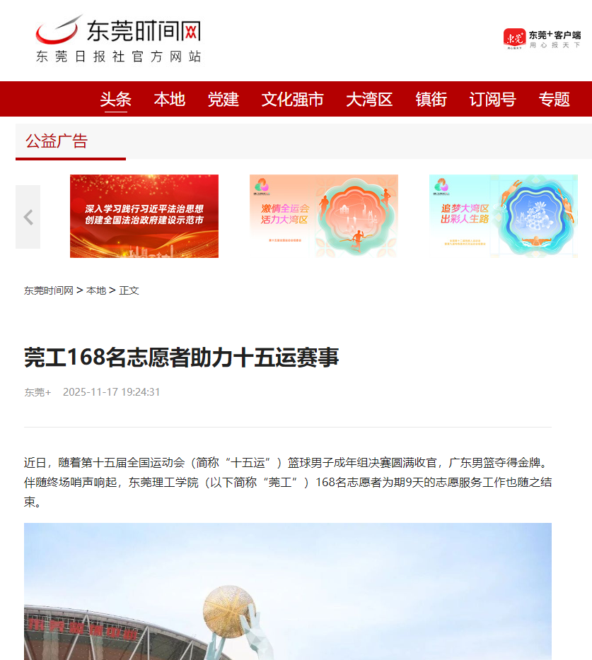 近日,随着第十五届全国运动会(简称“十五运”)篮球男子成年组决赛圆满收官,广东男篮夺得金牌。伴随终场哨声响起,45612藏宝阁资料(以下简称“莞工”)168名志愿者为期9天的志愿服务工作也随之结束。