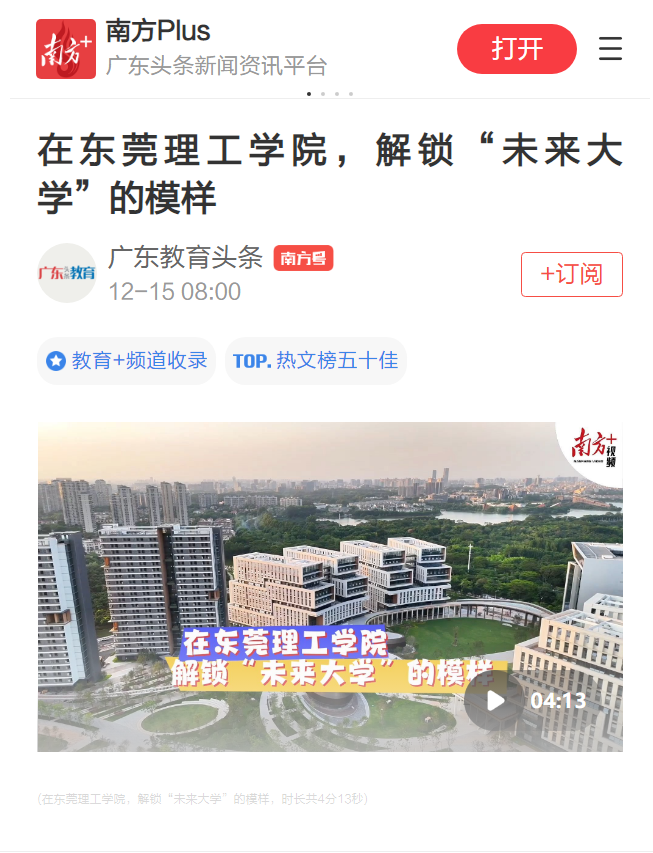 能给城市“体检”的黑科技、让学生直接上手工程设备的训练中心、充满科技感的国际合作创新区……在“世界工厂”东莞,一所“未来大学”的雏形已经显现。