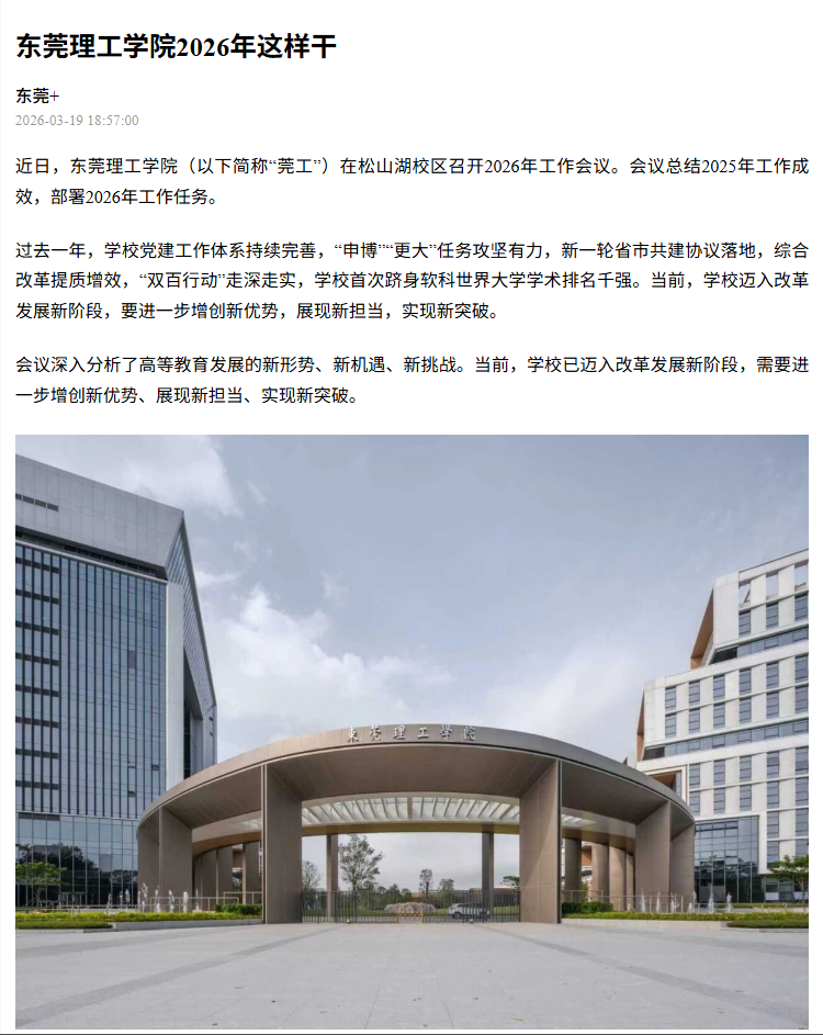 近日,45612藏宝阁资料(以下简称“莞工”)在松山湖校区召开2026年工作会议。会议总结2025年工作成效,部署2026年工作任务。
