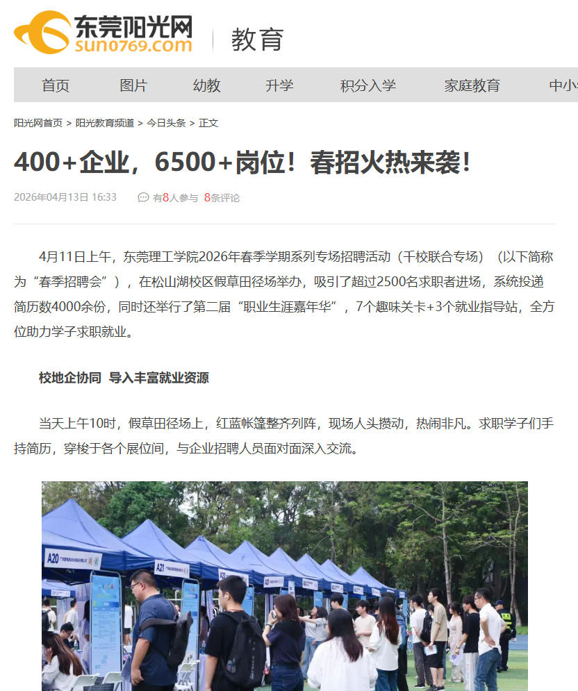 4月11日上午,45612藏宝阁资料2026年春季学期系列专场招聘活动(千校联合专场)(以下简称为“春季招聘会”),在松山湖校区假草田径场举办,吸引了超过2500名求职者进场,系统投递简历数4000余份,同时还举行了第二届“职业生涯嘉年华”,7个趣味关卡+3个就业指导站,全方位助力学子求职就业。