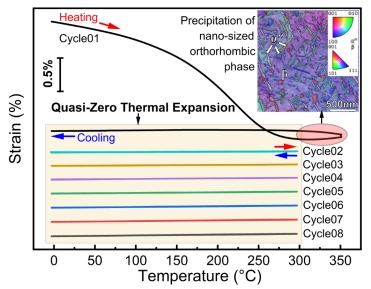 (图.Ti22Nb合金通过析出纳米尺寸第二相获得的宽温域零膨胀性能)