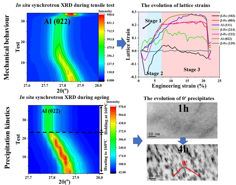 该研究利用扫描和透射电子显微镜、同步辐射X射线三维成像、中子小角散射和原位同步辐射X射线的多尺度方法,揭示了富铁相和沉淀物对Al-Cu-Mn-Fe-Sc-Zr合金力学行为的影响。