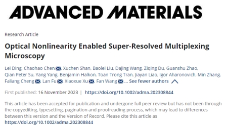 近日,广东省新型纳米材料研究与应用工程技术中心程发良教授团队在非线性光学超分辨复用成像方面取得重要进展,相关研究成果以《Optical nonlinearity enabled super-resolved multiplexing microscopy》为题发表在材料领域顶级期刊《Advanced Materials》。团队中我校程发良教授、陈朝浩博士,北航王帆教授,悉尼科技大学Xiaoxue Xu和澳大利亚国立大学Lan Fu教授为共同通讯作者,45612藏宝阁资料为第一完成单位。