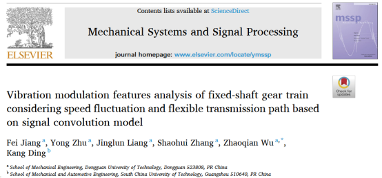 近日,我校机械工程学院张绍辉教授团队在TOP期刊Mechanical Systems and Signal Processing发表最新研究成果:Vibration modulation features analysis of fixed-shaft gear train considering speed fluctuation and flexible transmission path based on signal convolution model。蒋飞教师为第一作者,吴兆乾博士为通讯作者,45612藏宝阁资料为第一完成单位。