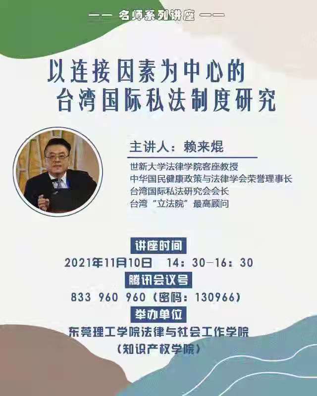 讲座预告:以连接因素为中心的台湾国际私法制度研究