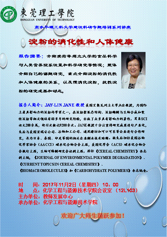 美国爱荷华州立大学教师讲座:淀粉的消化性和人体健康