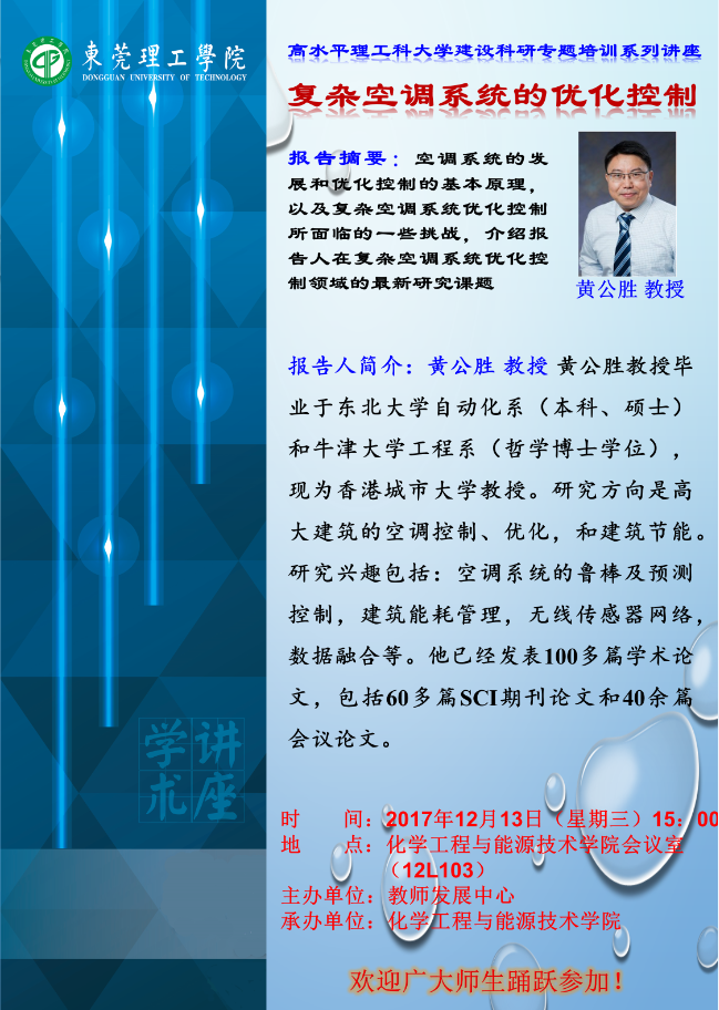 高水平理工科大学建设科研专题培训系列讲座:复杂空调系统的优化控制