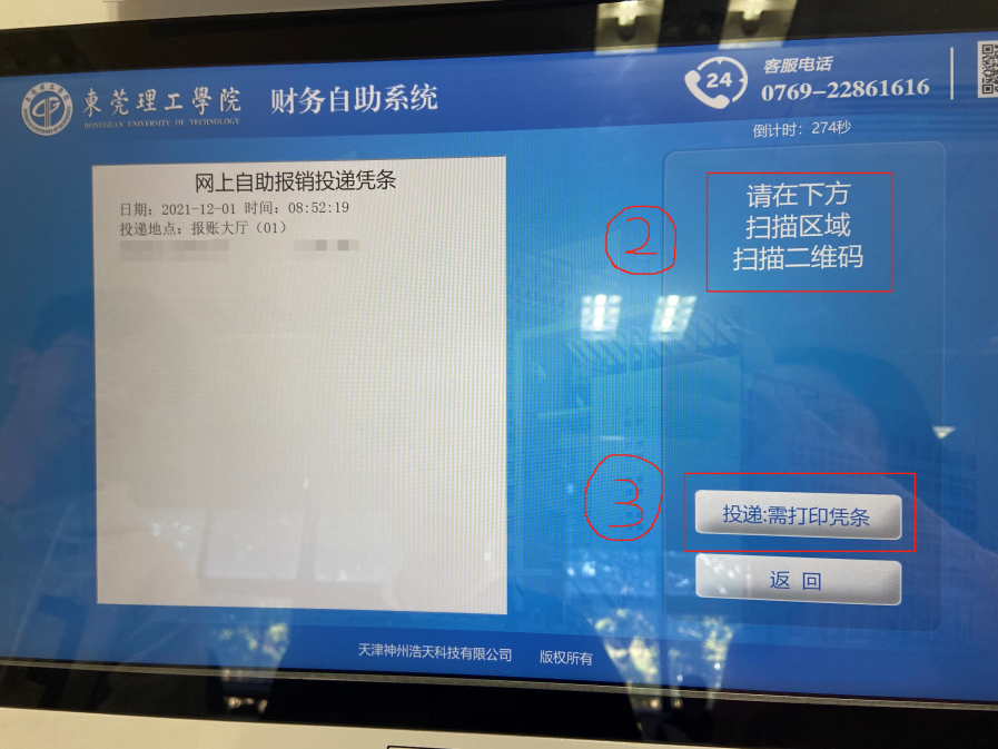 2.然后,在机器下方扫描口处扫描报销单上的二维码。