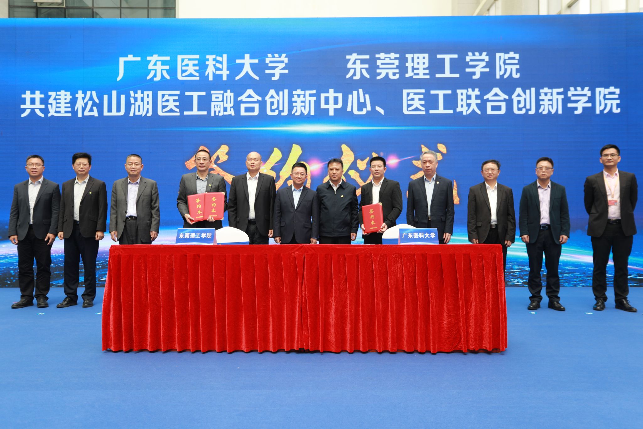 2022年3月7日,我校与广东医科大学签署合作协议,共建松山湖医工融合创新中心、医工联合创新学院。两所高校充分发挥双方在生物医药和理工领域的优势,构建新医科、新工科融合发展的高水平协同育人体系,打造成为校政合作、医工交叉的实践典范。
