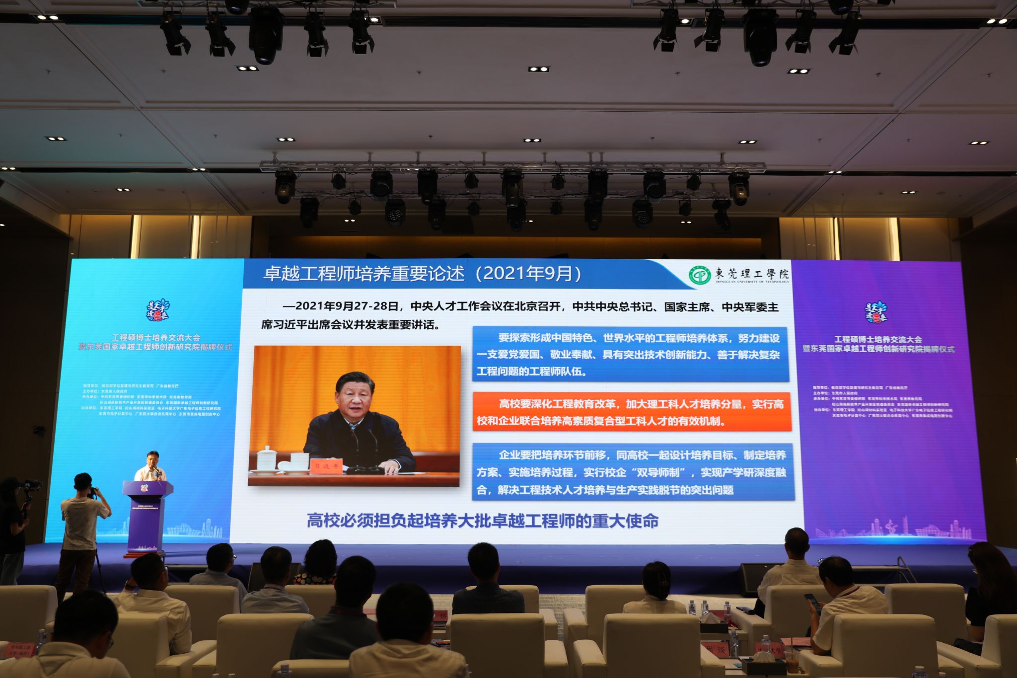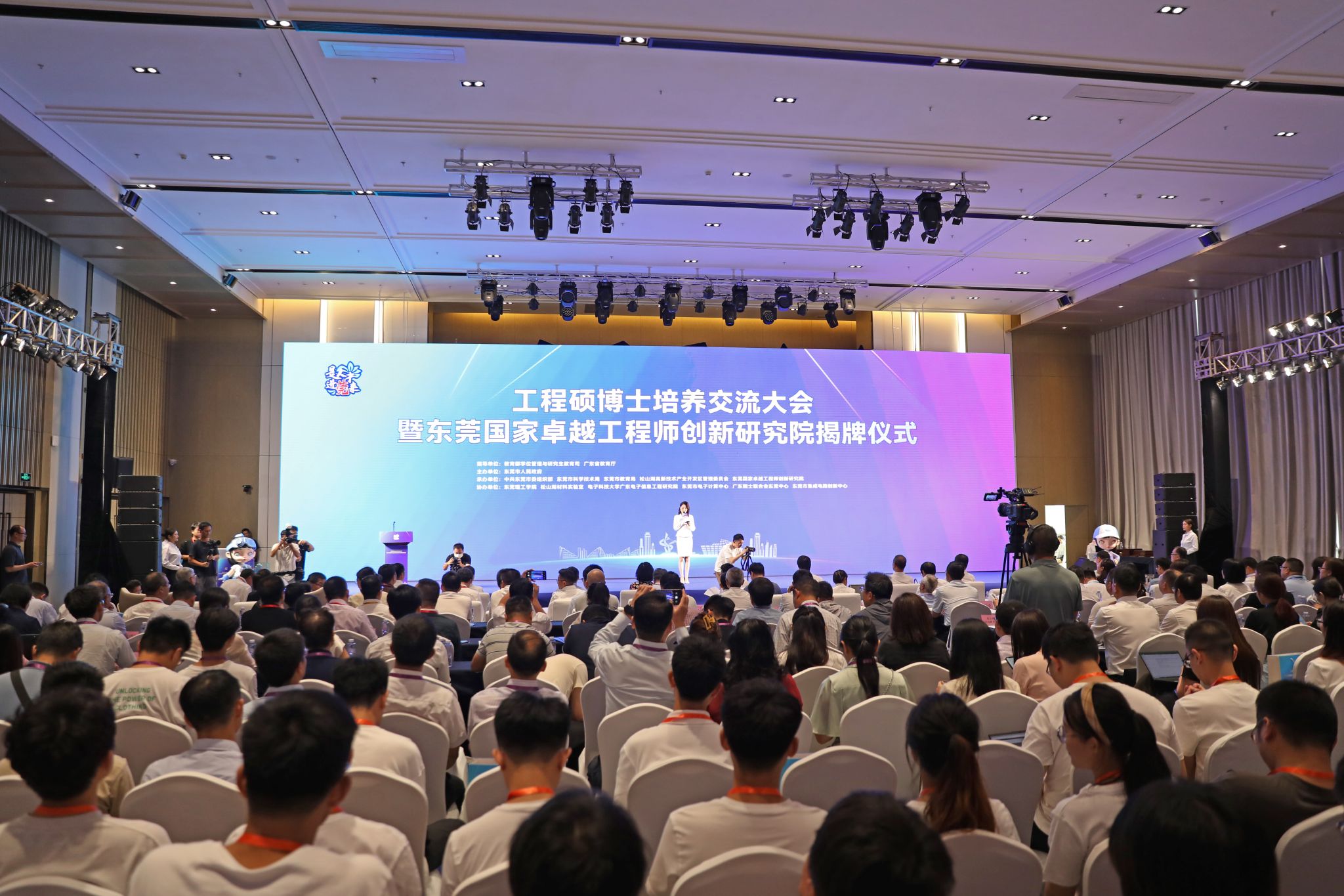 8月11日,工程硕博士培养交流大会暨东莞国家卓越工程师创新研究院揭牌仪式在松山湖举行。国内19所重点合作高校代表,华为、立讯技术等32家卓越工程师联培重点企业代表等共300余人参加了本次活动。学校校长马宏伟为东莞国家卓越工程师创新研究院揭牌,获颁研究院战略咨询委员会聘书,并作主题报告。