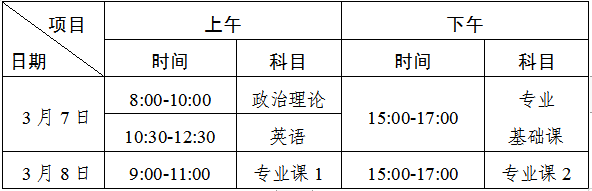 三、考试科目及考试时间